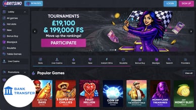 This relatively new online casino, which caters primarily to UK players, accepts deposits via bank transfer. The platform offers generous welcome packages, a wide variety of games and fast payouts. Players highlight instant cashouts, tournaments, a VIP programme and daily promotions, including reloads and loot boxes. This casino that accept bank transfer attracts players with a large selection of slots and live games.