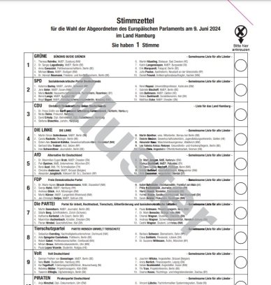 Ein Ausschnitt aus der Musterstimmzettel für Hamburg