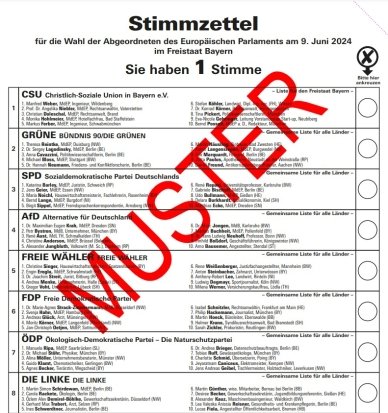 Ein Ausschnitt aus der Musterstimmzettel für Bayern