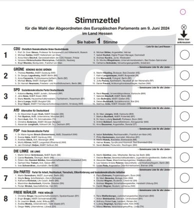 Wie sieht der Wahlzettel für die Europawahl aus?
