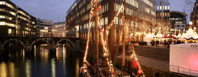 Die Nähe zum Hafen und Fleet verleiht dem Weihnachtsmarkt Fleetinsel einen einzigartigen maritimen Charakter. Die Lichtspiegelungen im Wasser verleihen dem Ort eine magische Atmosphäre und verwandeln ihn in eine echte Insel der weihnachtlichen Harmonie. Die Fleetinsel ist der perfekte Ort, um den besonderen festlichen Charme Hamburgs zu erleben.