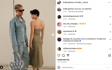 Seit drei Jahren ist der DJ mit dem Model Alan Getman zusammen. Nach einer langen Pause, in der es keine gemeinsamen Fotos oder öffentlichkeitswirksame Ankündigungen gab, postete das Paar zum Valentinstag ein gemeinsames Foto mit einer sehr prägnanten Bildunterschrift. Die Gerüchte über die neue Freundin von Robin Schultz haben sich also nicht bestätigt.