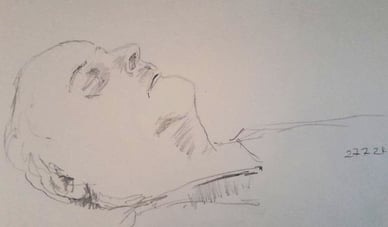 Zeichnung des verstorbenen Künstlers (gemalt von Verena Rihm)