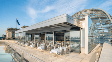 Dachgarten-Restaurant mit einer einzigartigen Lage auf dem Reichstag, Berlin