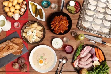 Im Allgemeinen ist die polnische Küche sehr kalorienreich und mit Kohlenhydraten vollgestopft. Es ist vielleicht seltsam, aber eine Tragödie macht niemand daraus und es gibt keine Angst und Bange wegen endokriner Störungen. Hier gibt es nicht mehr dicke Leute als in anderen Ländern Europas. Offensichtlich wirkt sich die dynamische Lebensweise aus.