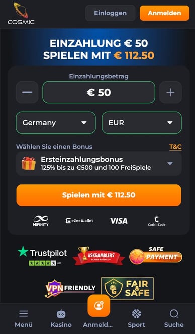 🎉 Exklusiver Bonus für die 1. Einzahlung | 120% bis zu 500 EUR + 250 FS |