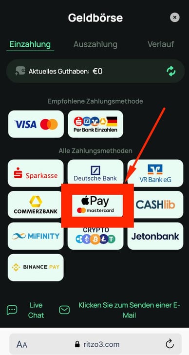 💰 Mindesteinzahlung | 10 € mit Apple Pay |