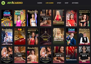 AvoCasino bietet ein erstklassiges Live-Casino-Erlebnis mit einer Vielzahl von Spielen wie Live Blackjack, Live Roulette, Live Baccarat und Live Poker, die von erfahrenen Dealern geleitet werden. Besonders hervorzuheben sind die verschiedenen Varianten von Blackjack und Roulette mit innovativen Funktionen.