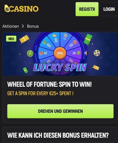 Um die Möglichkeit zu erhalten, eine Runde zu drehen, müssen Sie 25 Euro einzahlen. Drehen Sie anschließend am Glücksrad. Zu den Preisen dieser Aktion gehört die Möglichkeit, einen zufälligen Preis aus der folgenden Liste zu erhalten: 30 FS - Aztec Coins, 50 FS - Wild Spin, 100 FS - Hawaiian Night, 55 Coins, 75 Coins, 70 EUR, 100 EUR, 2 000 EUR.