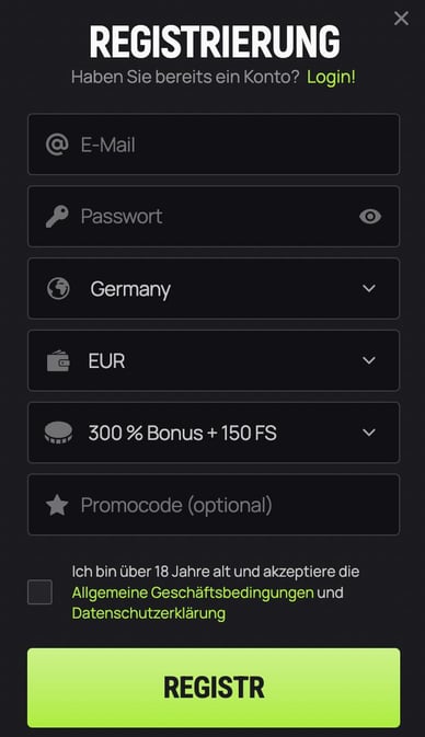 Um sich von Deutschland aus bei diesem Online Casino anzumelden: