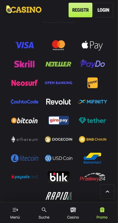 AvoCasino bietet in Deutschland eine Vielzahl an Einzahlungsoptionen, die den Spielern eine schnelle und sichere Einzahlung ermöglichen. Die verfügbaren Zahlungsmethoden umfassen: