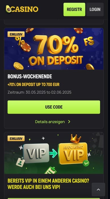 Aktivieren Sie den Bonus ohne einen speziellen Promo Code und erleben Sie das volle Potenzial von AvoCasino!