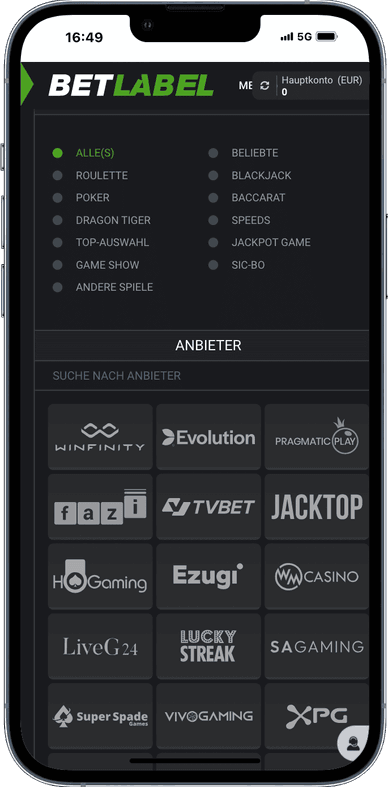 Wie Sie sehen können, unterstützen viele Live-Spiele im BetLabel Casino (Deutschland) Mindesteinsätze von 0,1 EUR. Das ist ideal für Anfänger.