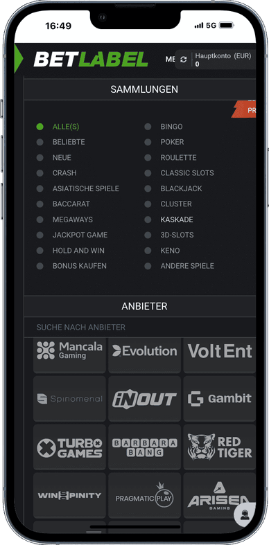Die Website von BetLabel Casino verfügt über ein adaptives Design, dank dem sie auf Geräten mit jedem Betriebssystem und Bildschirm voll funktionsfähig ist.