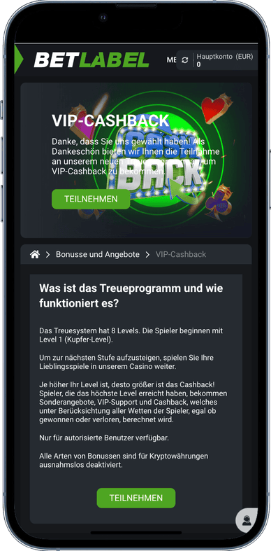 🟣 VIP-Cashback | Ein Treueprogramm mit acht Stufen. Je höher die Stufe, desto höher der Cashback. | Teilnahme an Spielen und Erreichen neuer Stufen im Treueprogramm. |