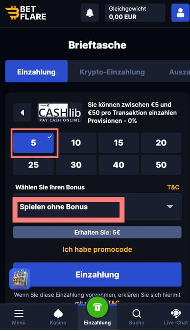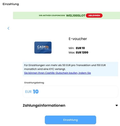 Mindesteinzahlung über Cashlib | |