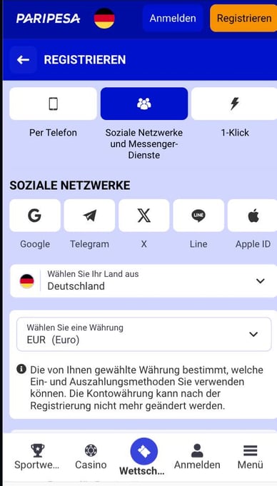 ➜ Verfahren: Registrierung über soziale Netzwerke (Google und Telegram)