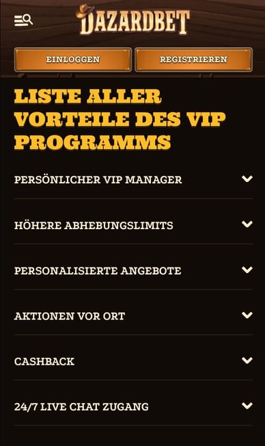 Das Bonussystem von Dazard bet ist recht umfangreich. Zusätzlich zu den Sonderangeboten erhalten die Spieler regelmäßige Boni. Diese sind in die folgenden Kategorien unterteilt.
