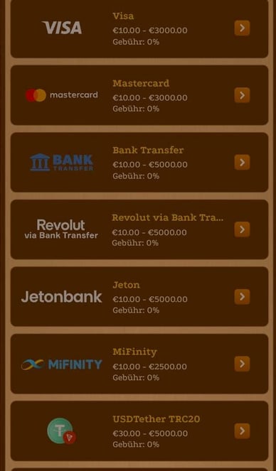 Für Spieler aus Deutschland steht eine recht lange Liste von Zahlungssystemen zur Verfügung.