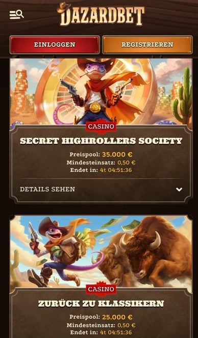 Besondere Aufmerksamkeit verdienen die Wettbewerbe. Bei meiner Recherche habe ich neun davon auf der Dazardbet Casino gefunden. Für jedes dieser Turniere können die Benutzer sofort die folgenden Informationen herausfinden: