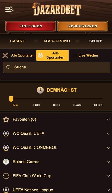 Auf der Grundlage des Dazardbet Casino Review kann man eine Schlussfolgerung über die Möglichkeiten von Wetten auf die Ressource ziehen. Für Sportfans bietet das Casino eine großartige Möglichkeit, ihr Fanerlebnis zu monetarisieren. Wenn Sie eine Wette platzieren, wird das Spiel Ihrer Lieblingsmannschaft oder Ihres Sportlers zu einem noch intensiveren Erlebnis.