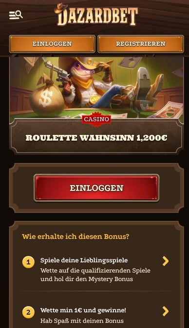 Besondere Aufmerksamkeit sollte man der alternativen Spiegelwebsite (Dazardbet 3) widmen. Sie dient als absolut sicher. Dies ist eine Art Rückversicherung, denn da das Casino eine nicht deutsche Lizenz hat, sperrt die Aufsichtsbehörde manchmal den Zugang zur Hauptseite.