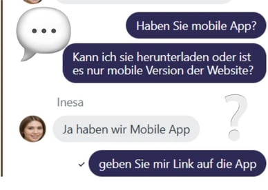 Ich bin mit einer Servicemitarbeiterin im Live-Chat in Kontakt getreten. Um das Gespräch zu beginnen, musste ich meinen Namen und meine E-Mail-Adresse im Chat-Fenster eingeben, obwohl ich auf der Website bereits eingeloggt war. Inesa begrüßte mich auf Deutsch. Meine Frage über das mobile Spielen auf der Website konnte sie innerhalb von fünf Minuten beantworten. Meiner Meinung nach war ihre Information nicht umfassend. Nach ihrer Antwort verließ die Mitarbeiterin den Live-Chat wieder und ich konnte keine weiteren Fragen stellen.