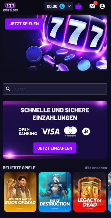 Die Ladezeit beträgt ein paar Sekunden und alle FastSlots-Spiele laufen bei stabiler Internetverbindung reibungslos. Es sind die gleichen Funktionen, Boni, Angebot und Zahlungen wie in der Desktopversion verfügbar.