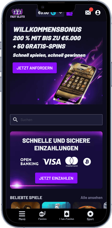 Das Fast Slot Casino verfügt auch im Bereich Live-Spiele über Untermenüs wie Blackjack, Roulette, Poker, Baccarat und Liveshows. Alternativ können Sie in der Suchzeile einfach den Spieltitel eingeben.