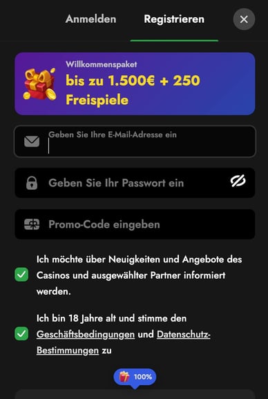 - AGB akzeptieren: Lesen Sie die Allgemeinen Geschäftsbedingungen und die Datenschutzrichtlinie des Casinos. Aktivieren Sie das entsprechende Kästchen, um zu bestätigen, dass Sie diese akzeptieren.