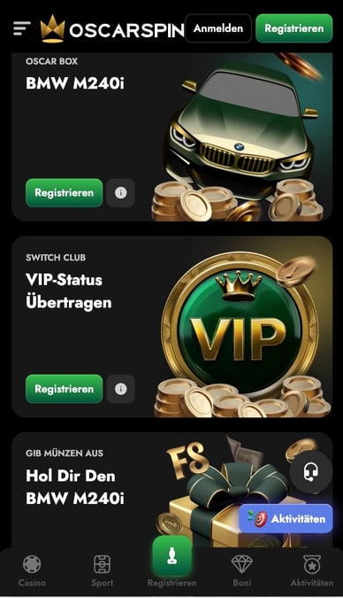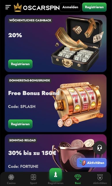 🎁 Boni und Promo | Ersteinzahlungsbonus, OSCAR BOX, Cashback, Die Bonusrunde vom Donnerstag, Sonntag Reload, Switch Club, Turniere, Treueprogramm, Bonus Shop, Glücksräder, Missionen |