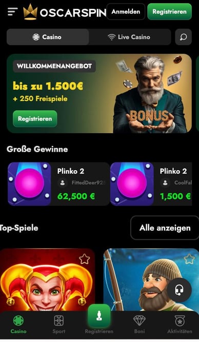 Bei der Überprüfung dieses Casinos habe ich festgestellt, dass diese Website eine hervorragende Auswahl an Spielautomaten zu verschiedenen Themen bietet. Um genau zu sein, gibt es 3988 Spielautomaten auf der Website, was zweifellos beeindruckend ist. Es handelt sich um Spielautomaten von weltbekannten Entwicklern. Darüber hinaus bietet das Casino nicht nur Standard-Spiele, sondern auch seltene wie OscarSpin Plinko. Und was wichtig ist, es gibt keine 5-Sekunden-Pausen bei den Spielautomaten!