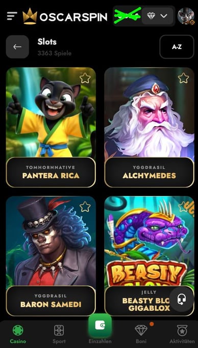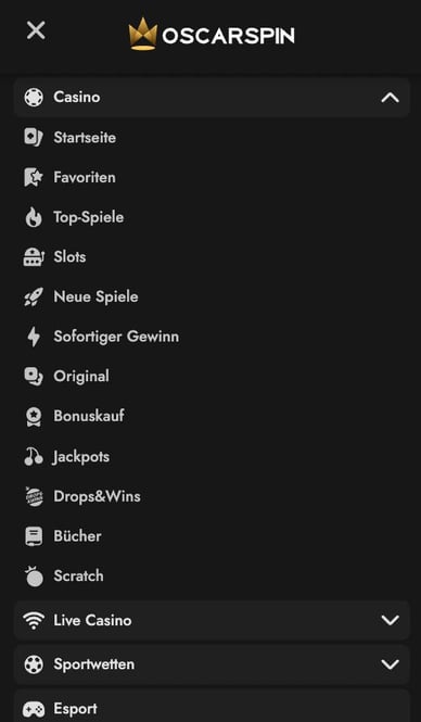 Im Oscarspin Casino für deutsche Spieler finden Sie mehr als 6.000 Spiele, die in die folgenden Kategorien unterteilt sind: