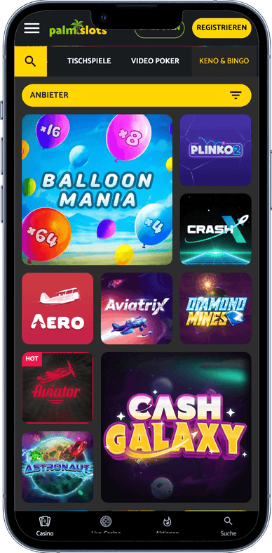 Keno und Bingo sind Glücksspiele, bei denen die Spieler Zahlen oder Muster auf einem Spielfeld auswählen und auf zufällig gezogene Gewinnzahlen hoffen. Sie bieten eine einfache und entspannende Spielerfahrung. Beispiele für solche Spiele sind Plinko 2 von BGaming, Aero von Turbo Games und Aviator von Spribe.