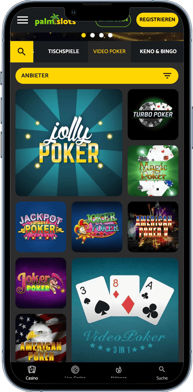 Video-Poker-Spiele bei Palmslots kombinieren Elemente von Poker mit Automatenspielen. Spieler müssen hierbei Kartenkombinationen bilden, um Gewinne zu erzielen. Video-Poker erfordert etwas mehr Wissen und Geschick als klassische Spielautomaten.