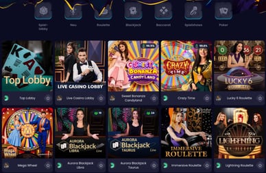 Mir persönlich hat dieser Bereich am besten gefallen. Tolle Auswahl an Pokerspielen. Das Spielen mit einem Live-Dealer sorgt für zusätzliche Spannung und das Gefühl, in einem landbasierten Casino zu sein. Hier sind einige Beispiele für Live-Poker: 6+ Poker, Bet on Poker, Poker live.