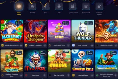 Dieses Casino ohne LUGAS bietet eine große Auswahl an Spielautomaten. Hier finden Sie Spiele zum Thema des alten Ägypten oder des antiken Griechenlands, Glücksspielautomaten über das Fischen, klassische Fruchtslots, Tierslots und vieles mehr. Die Spiele sind auch nach ihren Funktionen unterteilt, zum Beispiel haben viele von ihnen spezielle Symbole und Bonusspiele, die Spieler lieben. Dank der großen Vielfalt kann jeder Spieler Spiele finden, die ihm gefallen, egal ob er neu im Casino ist, oder schon erfahren.