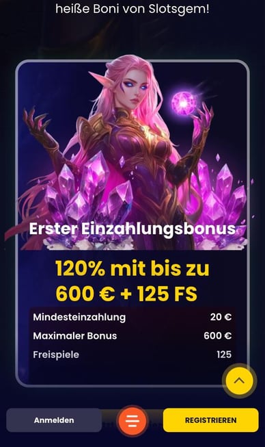 Slotsgem Casino hat eine Curacao-Lizenz und ist somit in Europa legal. Die Seite bietet den Spielern Zugang zu mehr als 4000 spannenden Spielen und gewährt großzügige Boni, z.B.120 % Bonus bis zu 600 € + 125 FS als Erster Einzahlungsbonus.