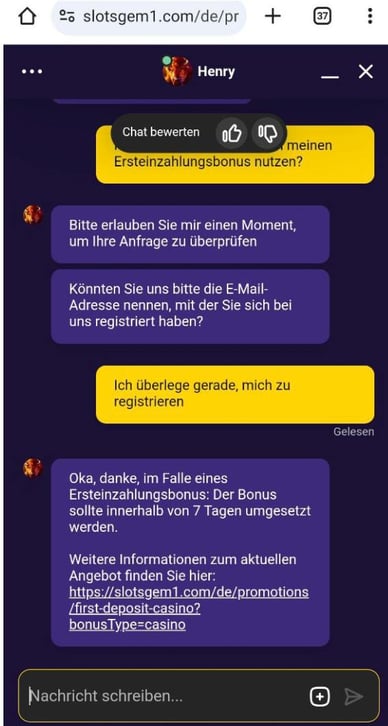 - per Live-Chat auf der Casino-Website (24/7);