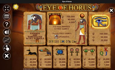 Slots mit hoher Volatilität: Seltene, aber hohe Gewinne. Beispiel: Eye of Horus (Merkur Gaming).