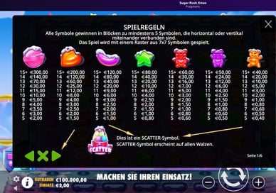 Betrachten wir dies am Beispiel des beliebten Sugar Rush Xmas Slots von Pragmatic. Das Foto zeigt die wichtigsten Merkmale des Spielautomaten, und eine detaillierte Beschreibung ist durch Drücken der grünen Taste „seitwärts“ verfügbar.