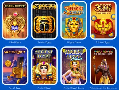Beispiele: Ancient Egypt (Pragmatic Play), Egyptian Fortune (Pragmatic Play), Book of Atem (Microgaming), Cleopatra (IGT).