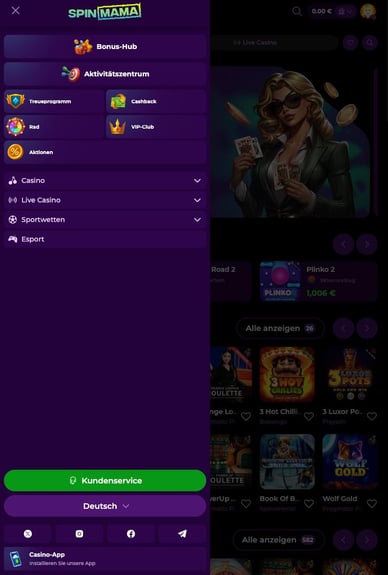 Man kann natürlich die mobile Version der Website nutzen. Sie müssen lediglich einen Browser auf Ihrem Telefon oder Tablet öffnen und die Adresse der Casino-Website eingeben. Es wird der Website-Mirror geladen. Laut meinen SpinMama Casino Erfahrungen erfolgt die Öffnung der Online-Spiele in der mobilen Version ebenso reibungslos, wenn die Internetverbindung stabil ist.