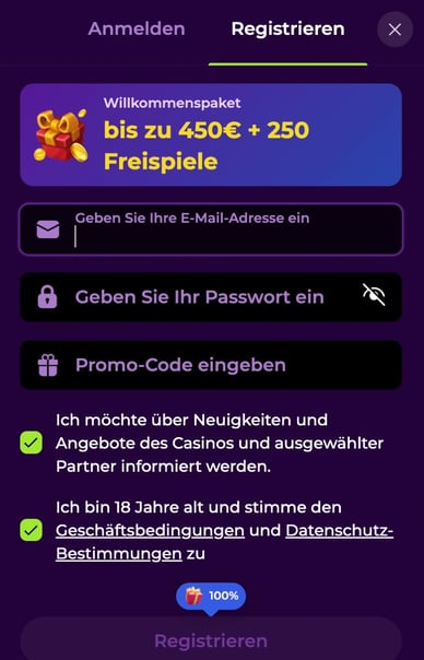 Das Willkommenspaket besteht aus drei Teilen für die ersten Einzahlungen. Insgesamt kann der Spieler 450 Euro + 250 Freispiele bekommen: