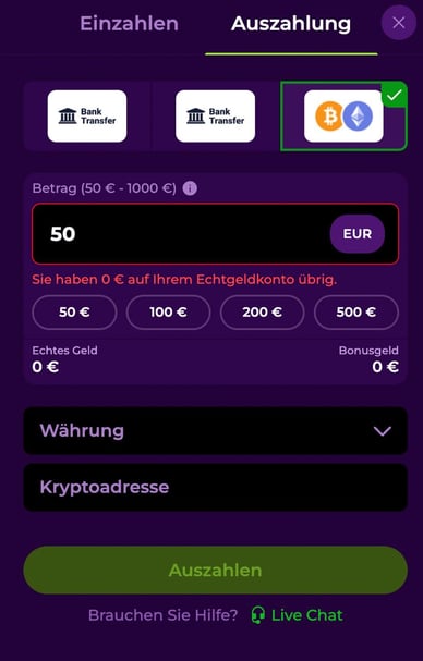 - ☑️ Vergewissern Sie sich, dass Ihr Guthaben ausreichend ist. Die Mindestauszahlung beträgt 50 Euro.