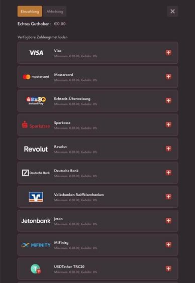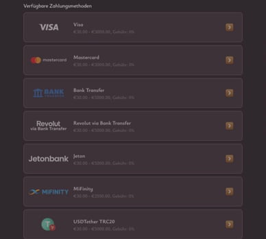 🤑 Zahlungssysteme | Mastercard, JetonBank, Mifinity, BTC, LTC, DOGE, Crypto Pay X, USDT |