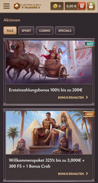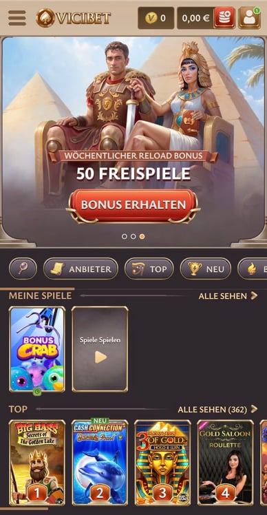 Ich habe herausgefunden, dass es ein neues Hybrid-Casino mit über 3.000 Slots, 80+ Jackpot-Games und einem integrierten Sportwettenbereich mit 25+ Sportarten ist. Als Krypto-Casino akzeptiert Vicibet Casino Bitcoin, Ethereum und andere Coins, unterstützt aber auch klassische Zahlungsmethoden. Anhand meiner bestes Online Casino Test ist es vollständig mobiloptimiert und richtet sich an Spieler, die Vielfalt, Tempo und moderne Features wie Bonus-Crab und Echtgeld-Shop suchen.
