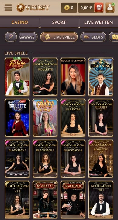 Das Live-Casino bringt echtes Spielhallen Gefühl auf den Bildschirm als für mich. Die Spiele laufen in HD. Professionelle Dealer leiten jede Runde. Die Einsatzlimits reichen von 0,10 € bis 10.000 €. Einsteiger und High Roller finden passende Tische. Anhand meiner Vicibet Casino Erfahrungen existiert der Demomodus nicht. Einsätze erfolgen ausschließlich mit Echtgeld.