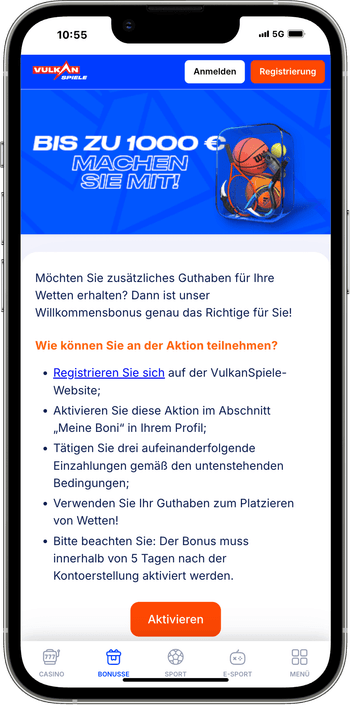 Willkommensbonus bei der Registrierung