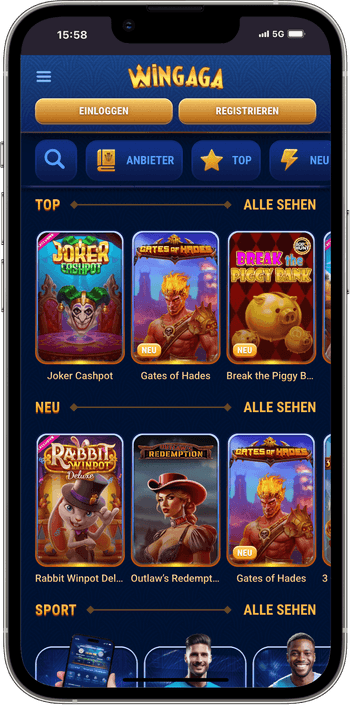 - Alle Spiele (das komplette Angebot von Casino Wingaga Online)